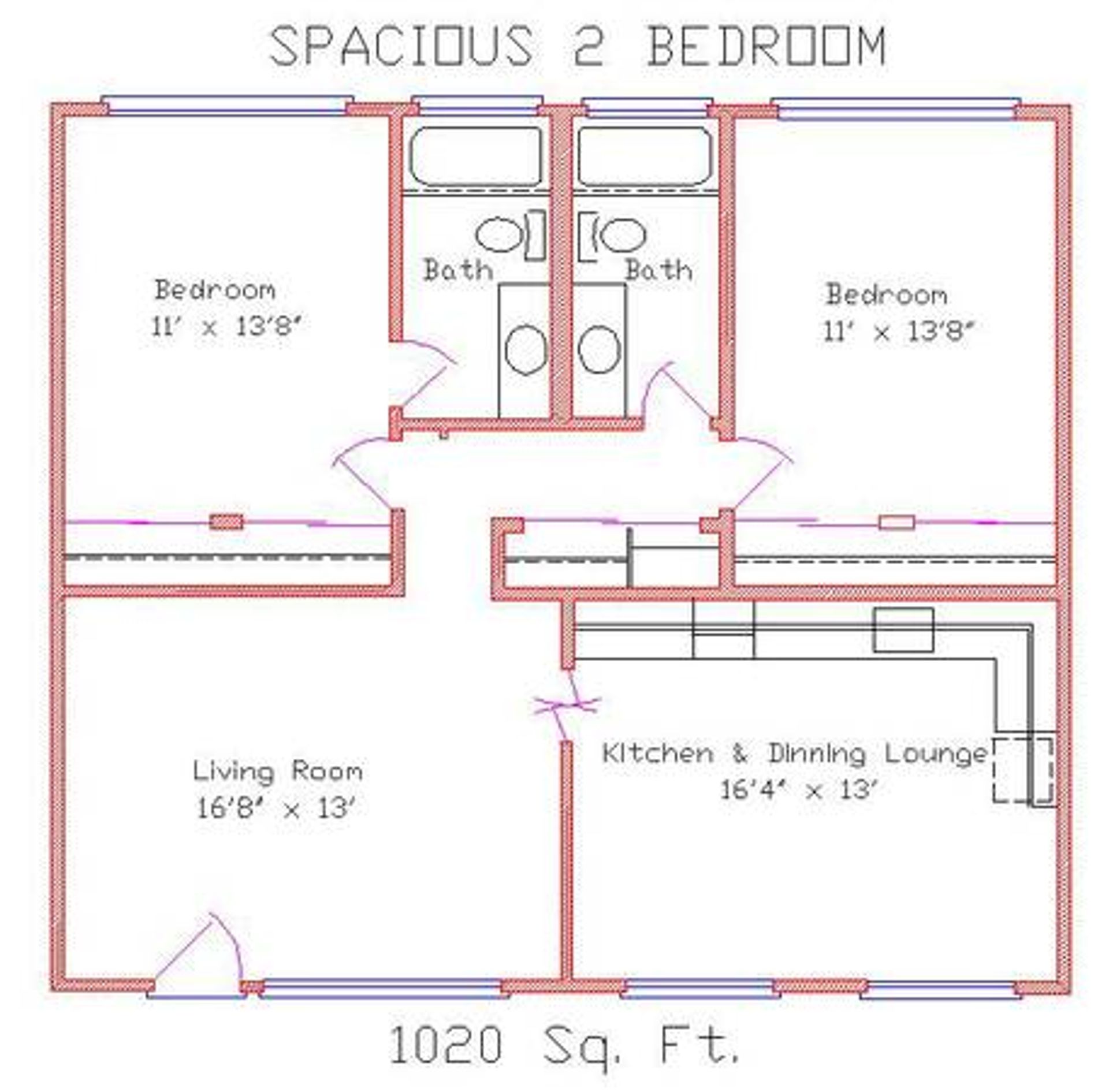 - Each 2-bedroom apartment spans 1020 square feet, featuring plenty of comforts: